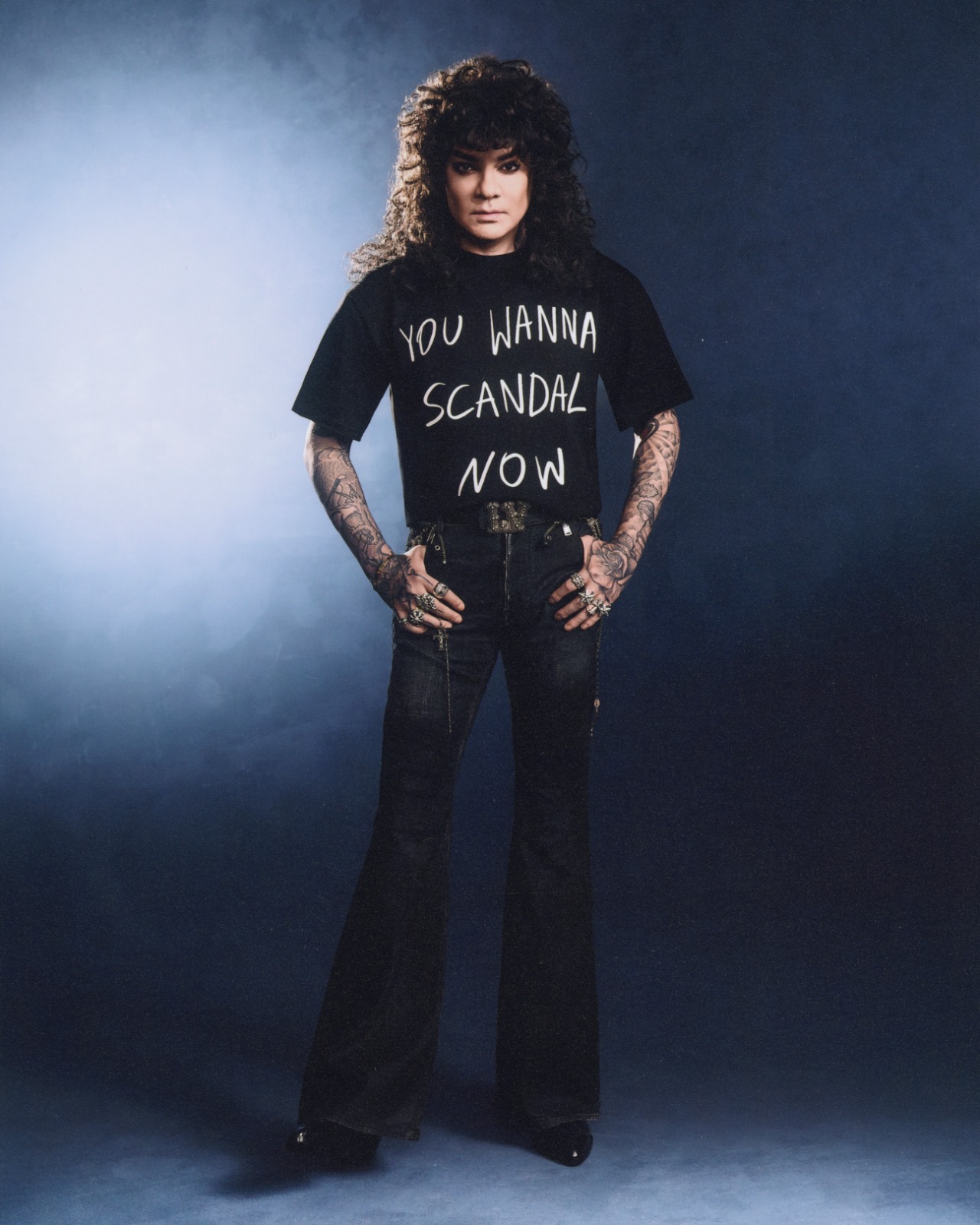 При детальном рассмотрении фотографий можно заметить, что любимые артистом стразы не пропали, но их стало значительно меньше. На футболках красуются как строки из его песен («Я эту жизнь тебе отдам»), так и ироничная фраза «you wanna scandal now?».
