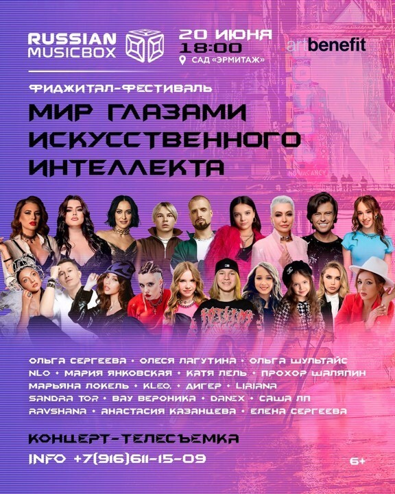 Телеканал RUSSIAN MUSICBOX представляет яркое музыкальное событие — концерт-телесъёмку в рамках уникального фиджитал-фестиваля «Мир глазами искусственного интеллекта», который пройдет 20 июня в историческом саду «Эрмитаж».