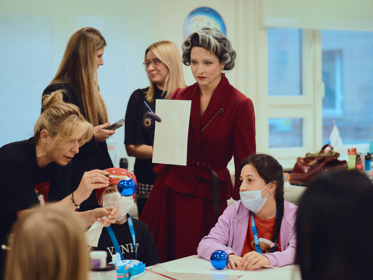 Старт мастер-классам дала Баба Яга. Екатерина Стулова предстала перед детьми в образе своей героини из фильма «Домовенок Кузя». Ребята приняли условия игры и с удовольствием заглядывали в её саквояж, загадывая желания.