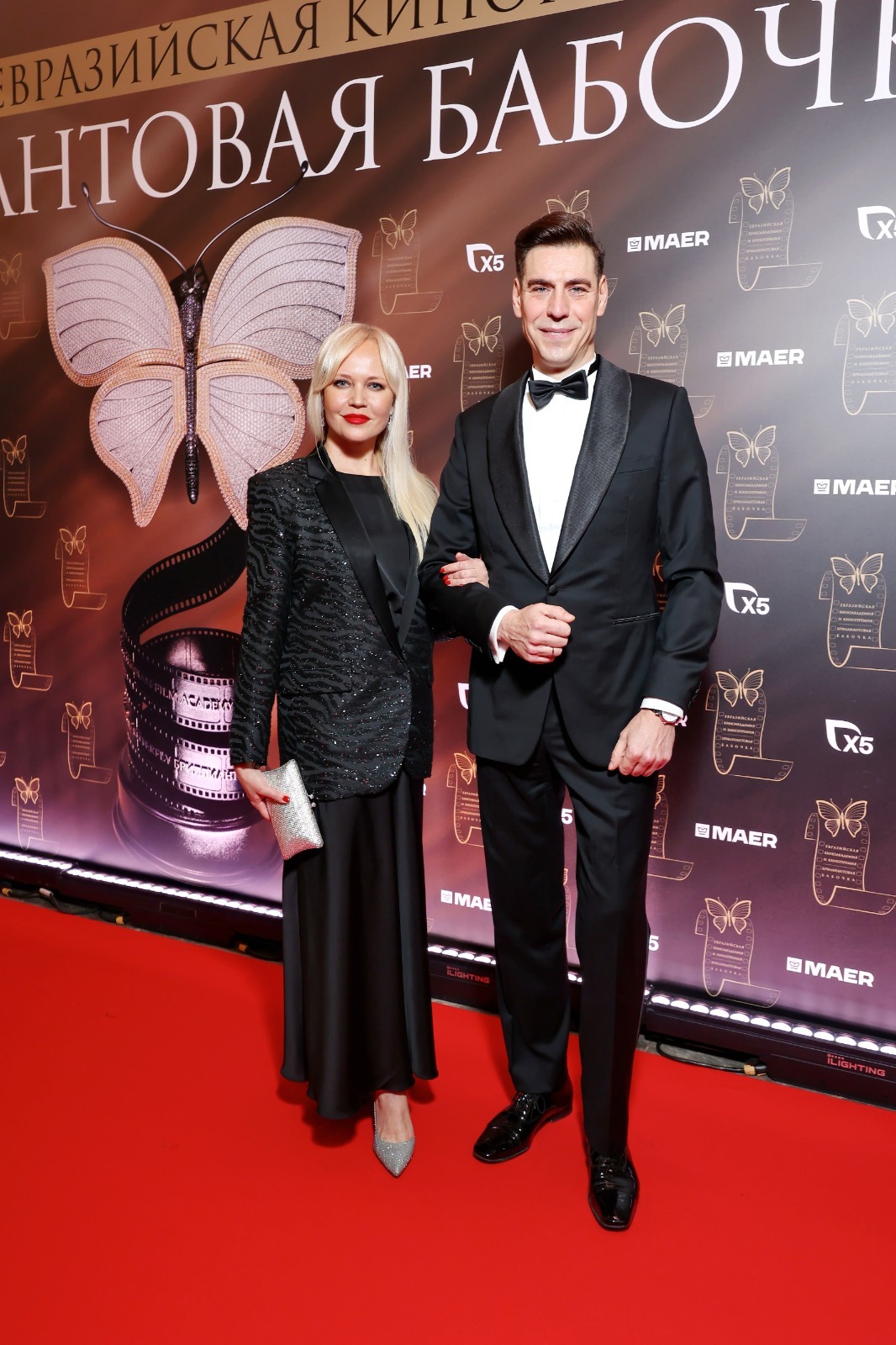 Дмитрий Дюжев пришел на церемонию с супругой, и их совместное появление вызвало неподдельный интерес публики. Супруга актера пояснила редкую публичность: