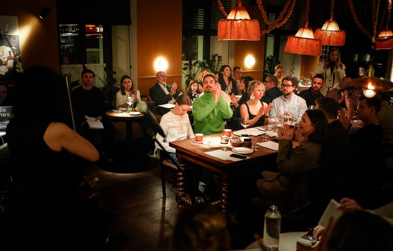 Эта встреча закрывала сезон благотворительных литературных вечеров 2025 года и прошла в Urban Winery. Городская винодельня в особняке XVIII века — проект новосибирского ресторанного объединения Friends Orchestra.