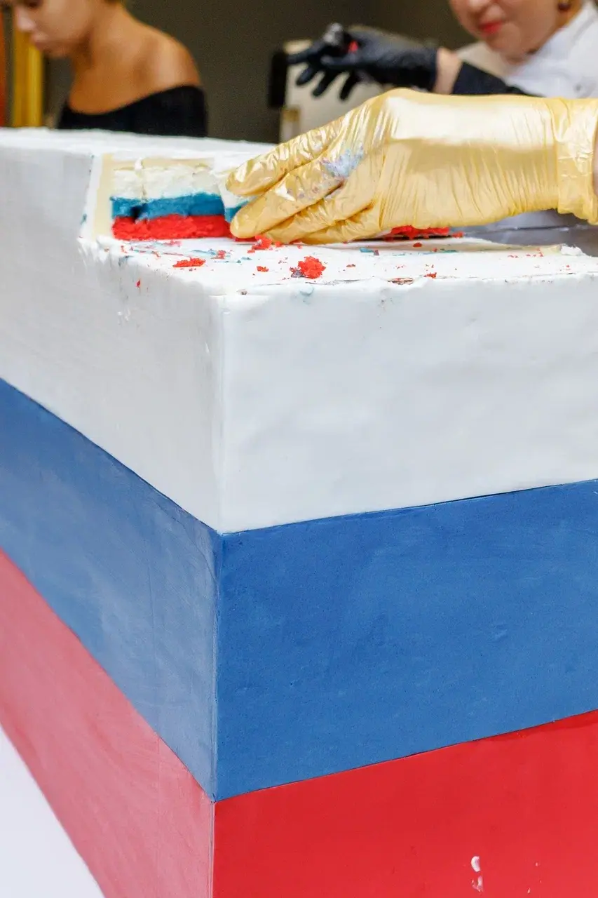 Под руководством звездных кондитеров Максима Синицких и Марины Синицкой мастера создали эксклюзивные десерты в цветах российского флага — символ единства, благодарности и заботы о героях.