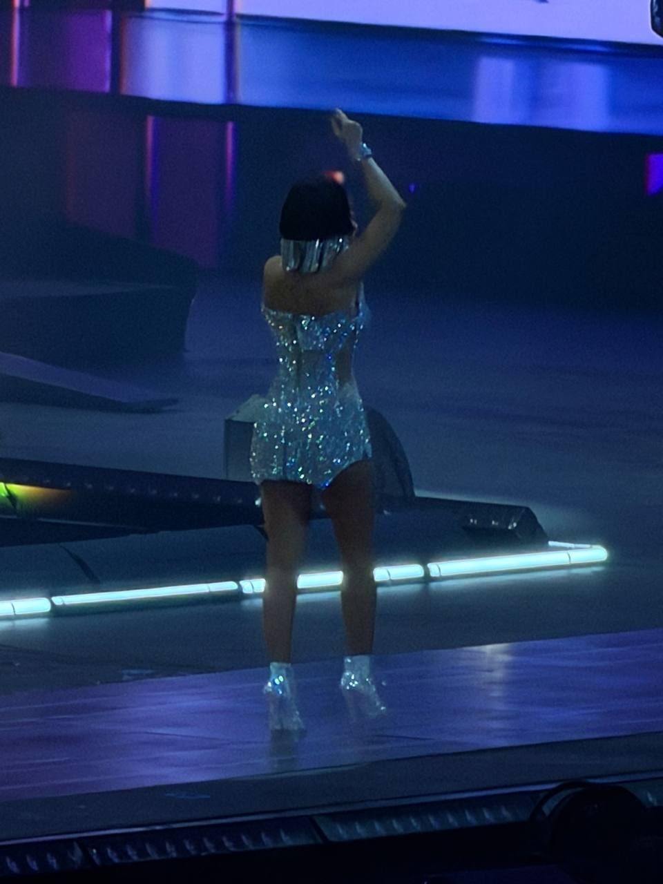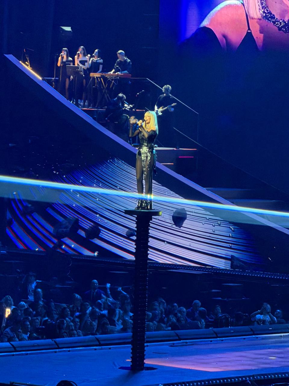 Огромная сцена постоянно трансформировалась: платформы двигались, поднимались в воздух и опускались вместе с самой певицей. Кульминацией стал момент, когда Ани поднялась на 50-метровый экран, чтобы исполнить песню прямо под куполом зала. Артистка призналась, что боится высоты, но ради шоу пришлось преодолеть этот страх.