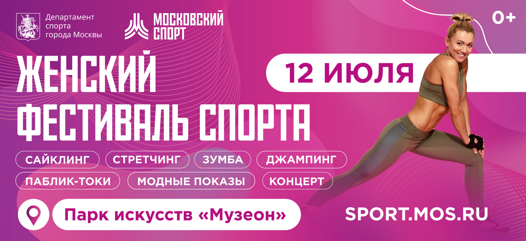 12 июля парк «Музеон» станет площадкой для фестиваля женского спорта — масштабное спортивное развлекательное мероприятие в котором примут участие более 100 000 жительниц столицы. Участниц ждут групповые тренировки по различным видам спорта, паблик-толки, мастер-классы от популярных спортсменок, воркшопы по моде и красоте.