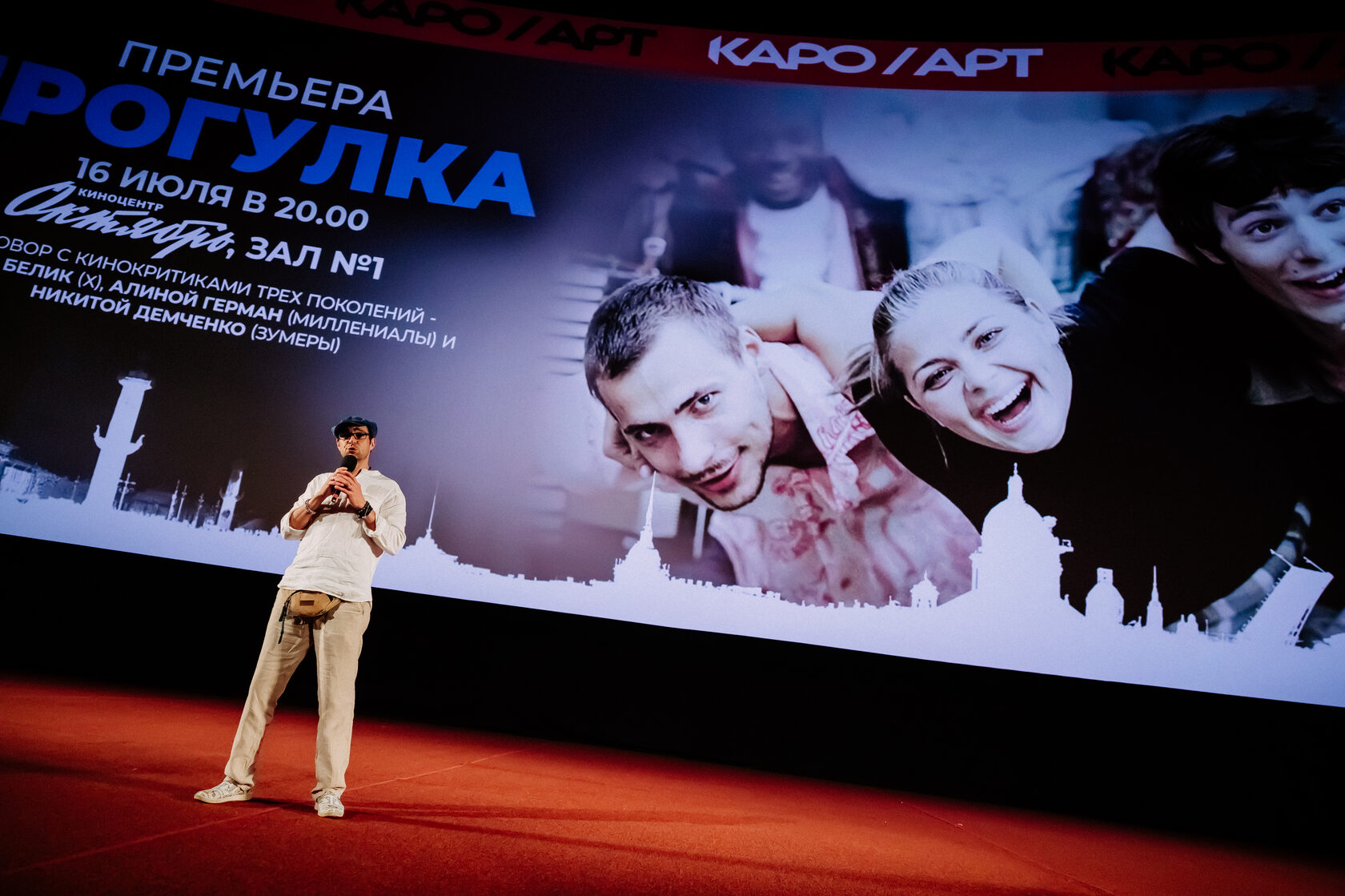 16 июля в столичном кинотеатре «Октябрь» прошёл показ легендарной «Прогулки» Алексея Учителя. Лента, вновь выходящая на большие экраны 24 июля, была представлена при участии кинопроекта КАРО.Арт.