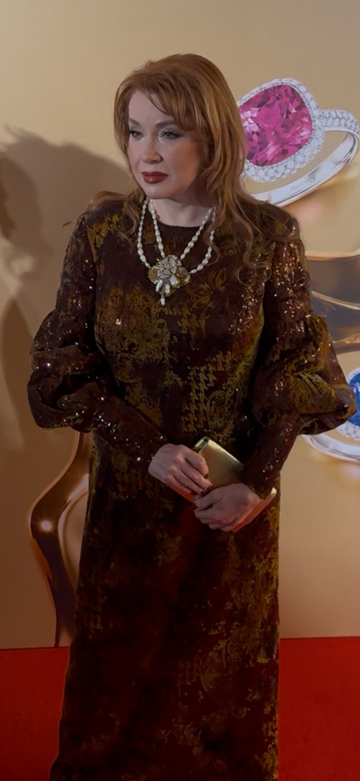 С первых минут актриса стала устанавливать свои порядки. Сначала попросила охранника не торопить ее с выходом к фотографам, сообщив, что «сама знает когда нужно выйти». Затем, попозировав и пройдя в зону интервью, сделала замечание Вере Сотниковой, что та своим долгими ответами тормозит очередь. В завершении, дождалась объятий министра культуры Ольги Любимовой и только после этого покинула красную дорожку.