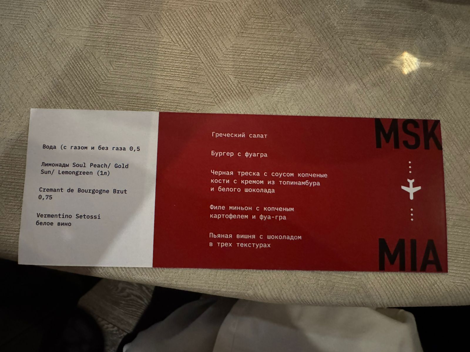 Приглашенным гостям в ресторане «Dubai» предлагали по истине царские блюда по меню, оформленному в виде билета на самолет из Москвы в Майами. Сытыми и слегка пьяными должны были быть все приглашенные гости.
