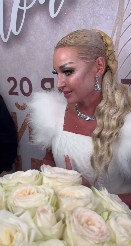Для своего юбилея Волочкова выбрала эффектное платье от Аники Керимовой, напоминающее белого лебедя. Одним из первых её с утра поздравила домоправительница Лола, а огромный букет цветов преподнёс Николай Басков. Телефонные звонки, по словам балерины, не умолкали весь день.