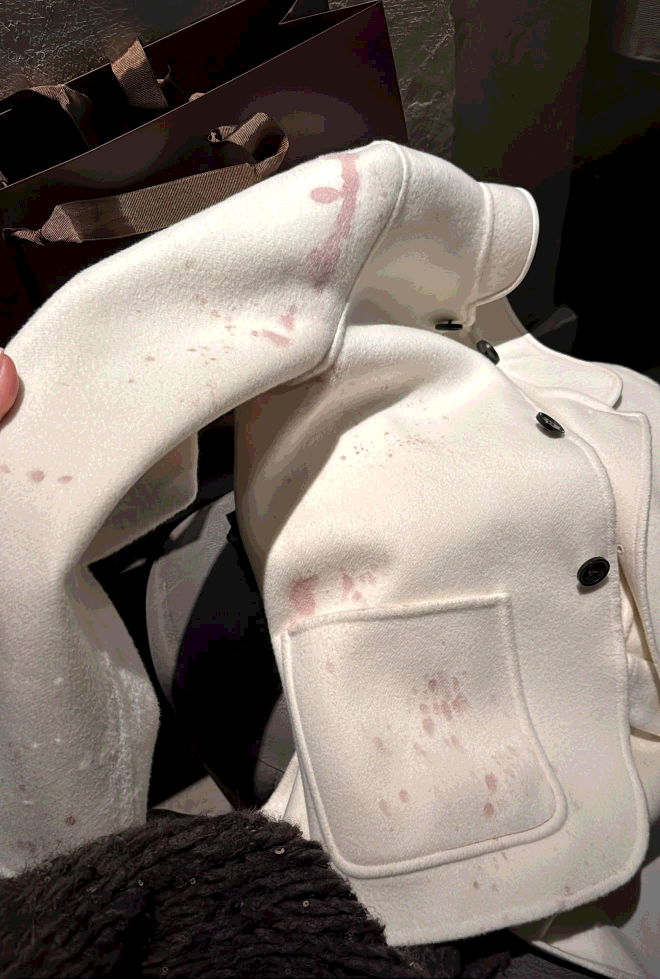 «Сказать, что обидно — ничего не сказать. 35 минут просуществовал на мне белый жакет», — прокомментировала происшествие Ксения Бородина в своём Telegram-канале.
