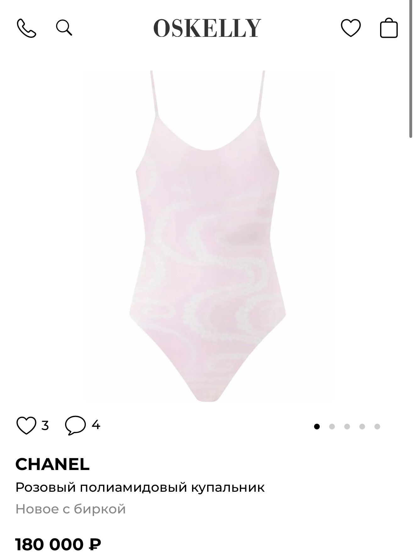 Розовый слитный купальник Chanel оценивается примерно в 180 тысяч рублей.