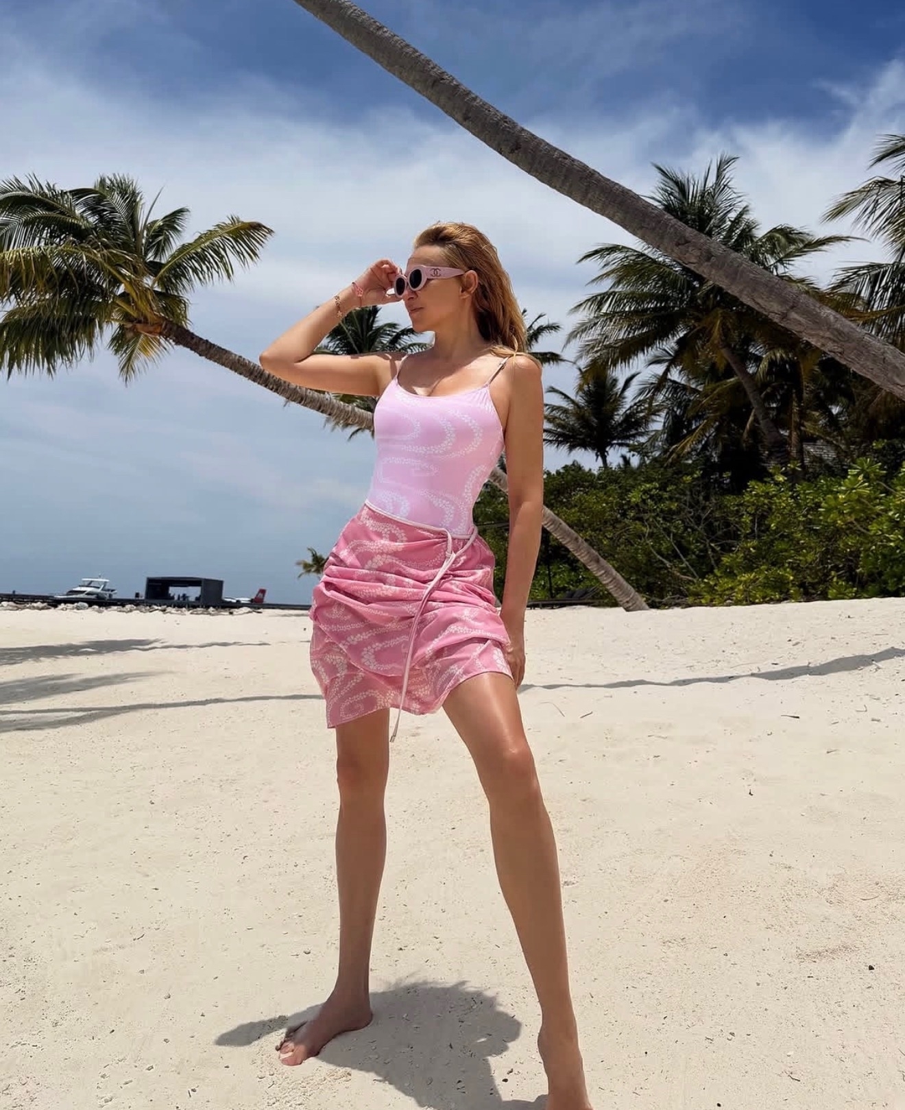 Продюсер Яна Рудковская отдыхала на Мальдивах вместе с мужем Евгением Плющенко и сыновьями. На одном из пляжей она устроила фотосессию в полностью розовом образе от Chanel. Снимками знаменитость поделилась в своих соцсетях.